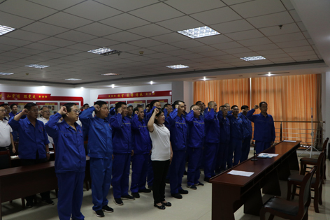 2021年7月1日上午,公司黨委(wěi)在公司黨建活動中心組織召開預備黨員宣誓暨優秀黨員表彰會議(yì)。公司黨委、紀委(wěi)班子(zǐ)成員和各支部班子成員、17名新發展黨員及本年度獲評的20名優秀黨員參加了會(huì)議,會議由黨委辦公(gōng)室主任徐愛民主持。 宣誓儀式在莊嚴的《國際歌》聲中拉(lā)開了帷幕。2020年度和2021上(shàng)半年度新發展的(de)17名預備黨員麵對鮮紅的黨旗,在黨委書記李德軍同誌領誓(shì)下,右手舉拳,神情肅穆(mù),鄭重宣誓。宣誓完畢後,老黨員代表郭章雷和新黨員代表東明明分別作了發言。公司黨委書記李德軍代表公(gōng)司黨委向新發展的預備黨員表示了祝賀,並對新黨(dǎng)員提出了希(xī)望和要求。 會上,公司黨委副書記(jì)李峰同誌宣讀了公司黨委《關於對推薦評(píng)選的(de)優秀共產黨員(yuán)進行通報表彰的決定(dìng)》,公司黨委(wěi)書記李德軍、黨委(wěi)副(fù)書記李峰為獲獎人員進行了頒獎(jiǎng)。