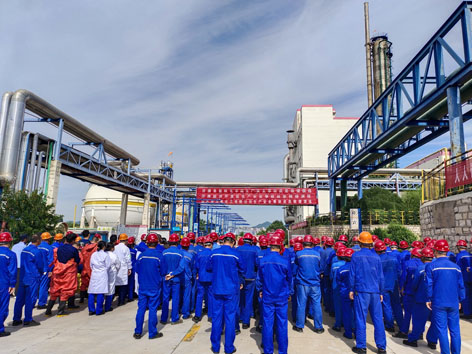 根據公司“安全生產月”活動安排,6月21日上午,公司在液(yè)氨球罐區成功組織開展了2025年度生產安全(quán)事故綜合應急(jí)救援演練(liàn),100餘名員工觀摩了演練。